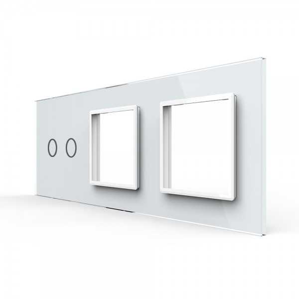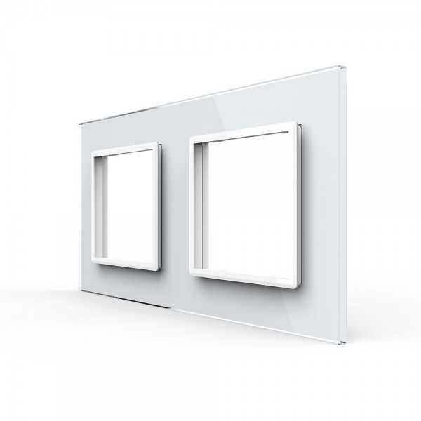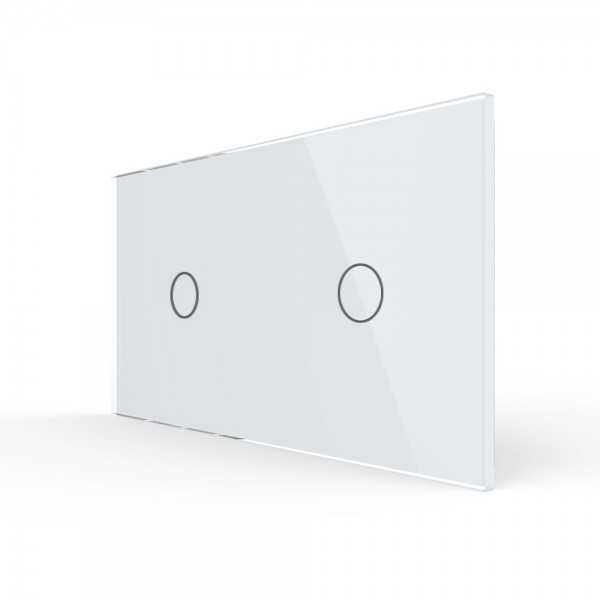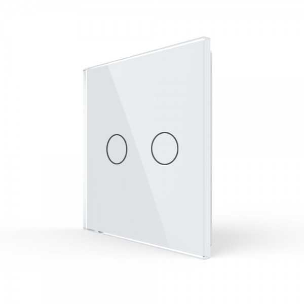 Doble Interruptor convencional Livolo sin marco de cristal color blanco para libre montaje.
