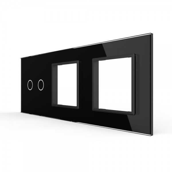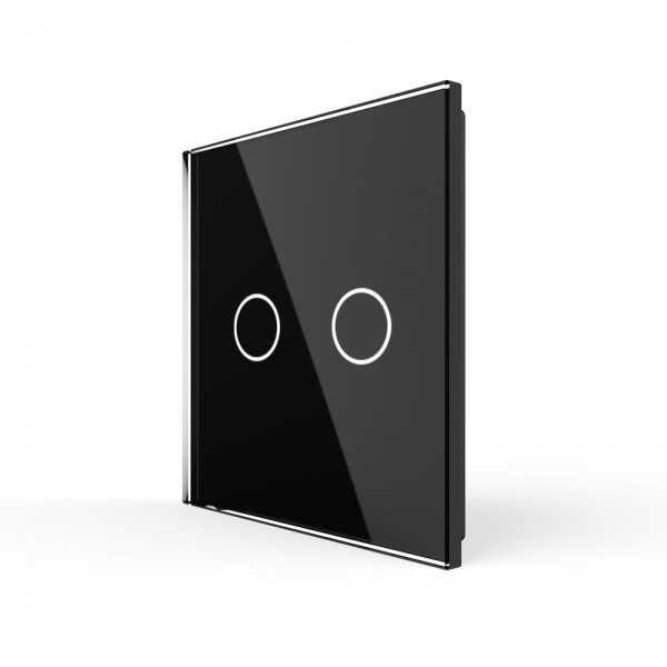 Doble Interruptor convencional Livolo sin marco de cristal color negro para libre montaje.