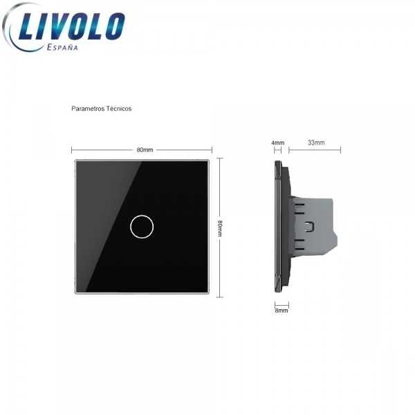 CONMUTADOR Interruptor TACTIL Livolo de Cristal Luz de Pared Color Negro EU STANDARD.