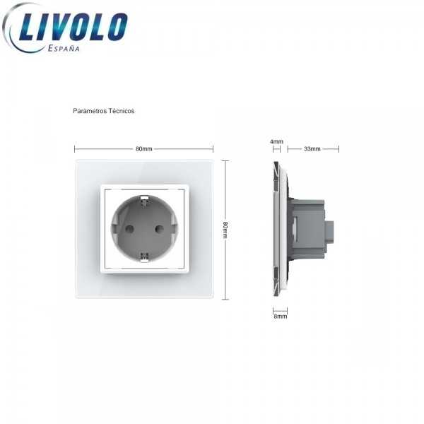 Enchufe Tomacorriente Livolo 1 toma de pared de cristal color Blanco EU Standard.