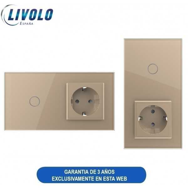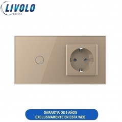 LIVOLO ESPAÑA ORO CONMUTADOR 1 Tactil + 1 Toma Enchufe EU de pared de cristal Livolo color Dorado ( Gold ) EU Standard