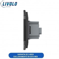 Cruzamiento Conmutador Doble TACTIL + 1 TOMA Enchufe Tomacorriente marca Livolo con panel de cristal EU Standard color Negro