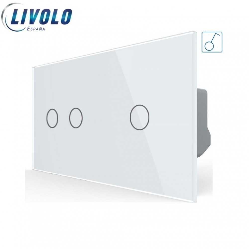 Interruptor (2+1) , Interruptor DOBLE + 1 táctiles marca Livolo con panel de cristal EU Standard color BLANCO