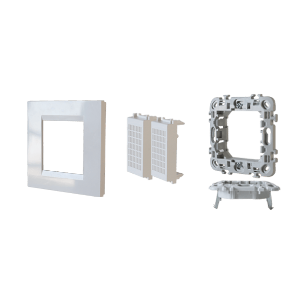 El sensor de temperatura puede ser instalado detrás de esta carcasa SET 2M. Es adecuado para el montaje en cajas de Ø60 con garras. El juego consiste de: placa de cubierta 1 x 1, 2 x 1 M perforada tapa en blanco y montaje 1 x 2M marco con garras. 2M carcasa SET está hecho de material de PC / ABS y tiene unas dimensiones 2M. conjunto de carcasa 2 M está disponible en color blanco polar.